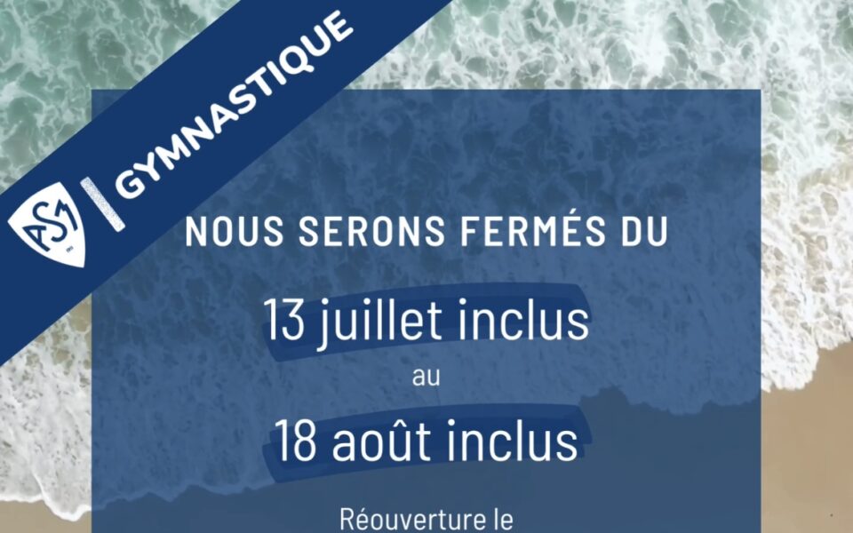 Nous serons fermés du 13 juillet au 18 août 2024. Réouverture du club le lundi 19 août 2024. Bel été à vous. [...]