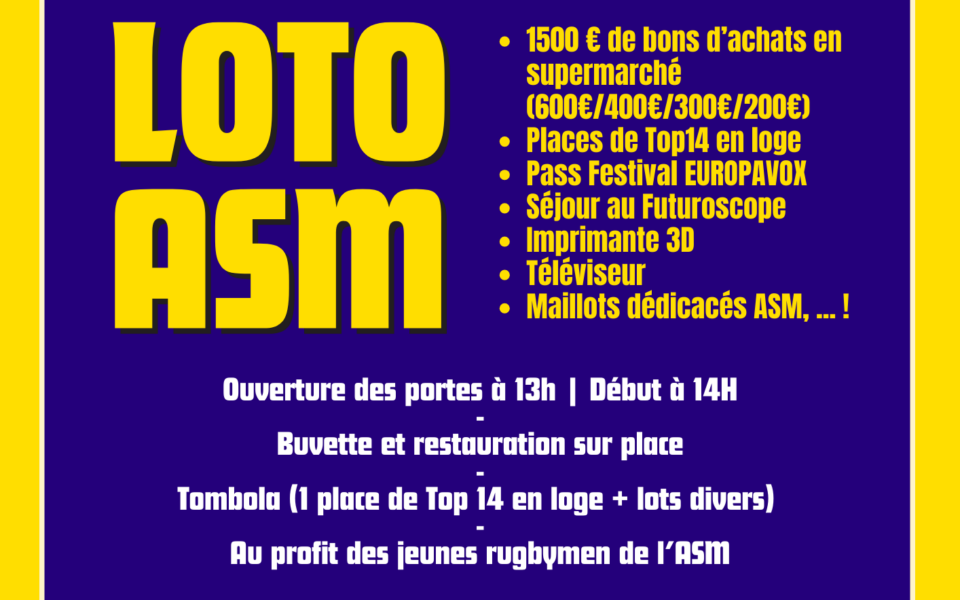 L'ASM Rugby organise le grand retour de son Loto !