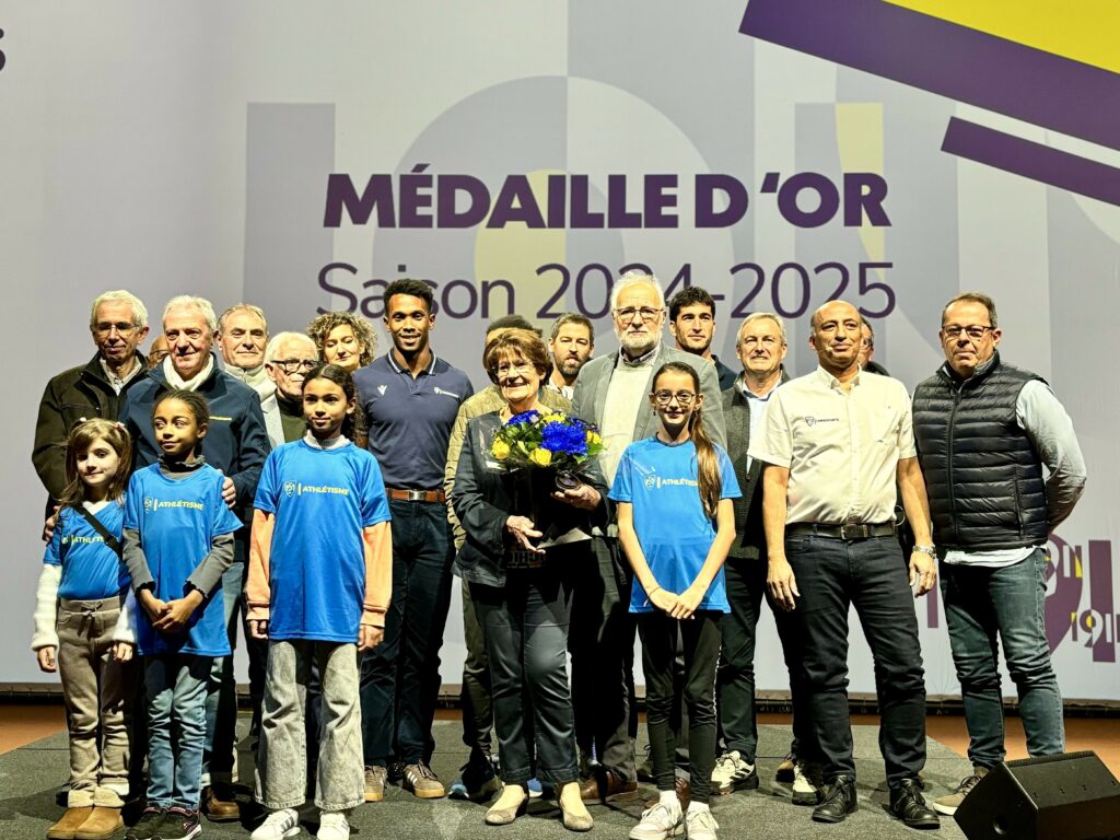 La soirée a été marquée par un temps d’émotion : la remise de la 94ᵉ médaille d’or à Jeannette Lépinard, figure emblématique de la section Athlétisme depuis plus de 30 ans.