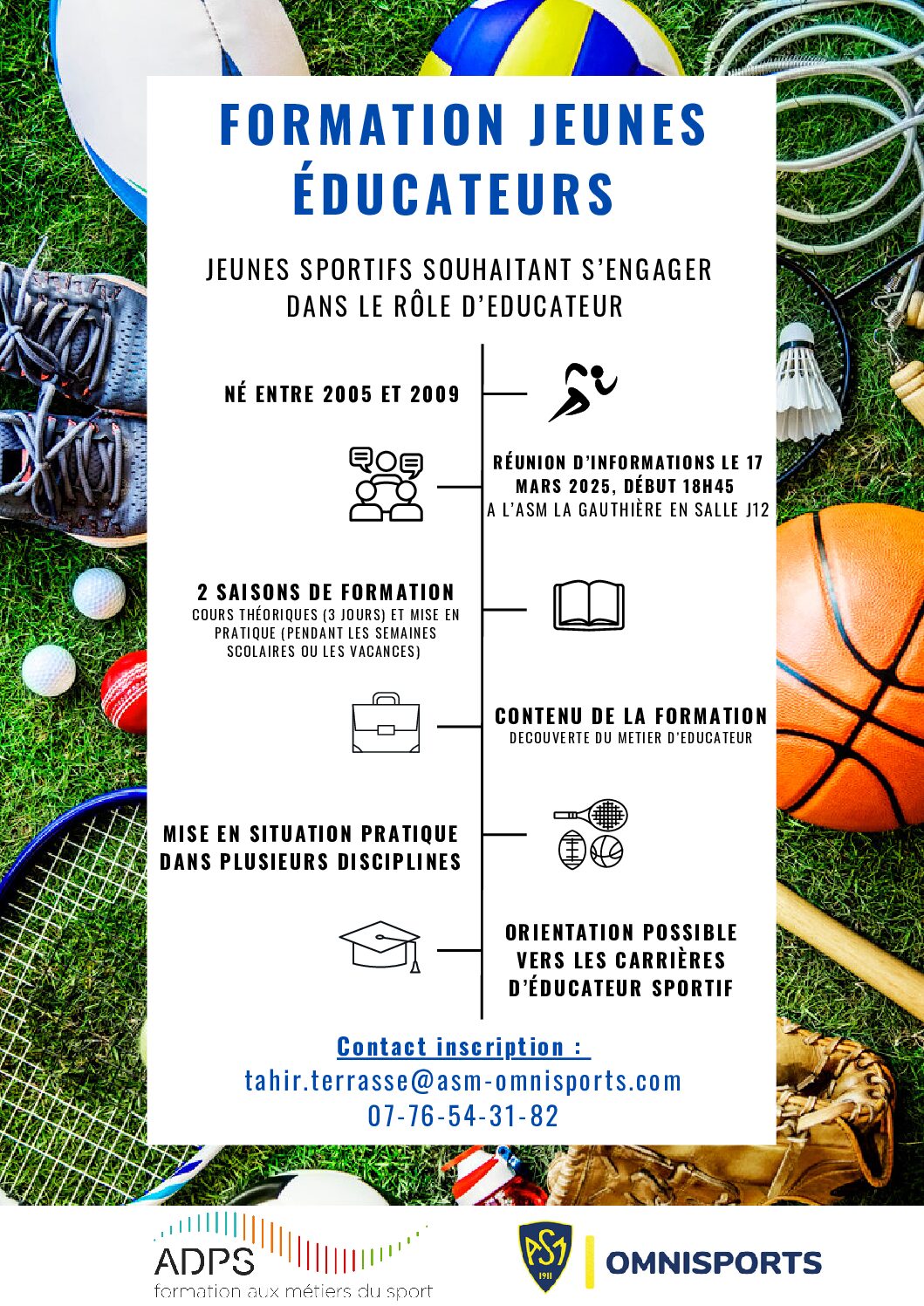 Nous organisons une réunion d’information le lundi 17 mars 2025 à 18h45, qui se tiendra en salle J12 (Bâtiment Boxe) de l’ASM Omnisports, à la Gauthière.