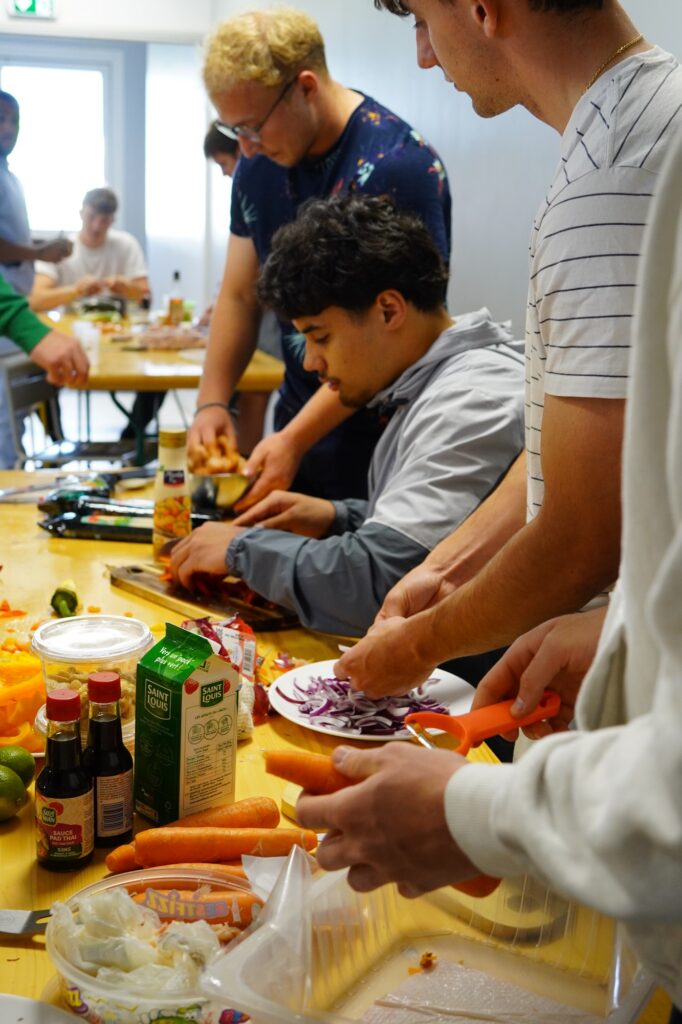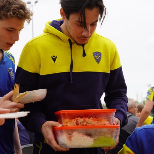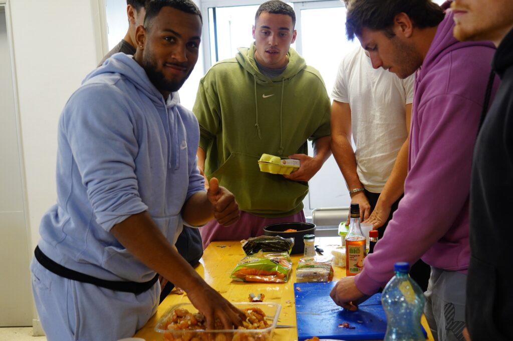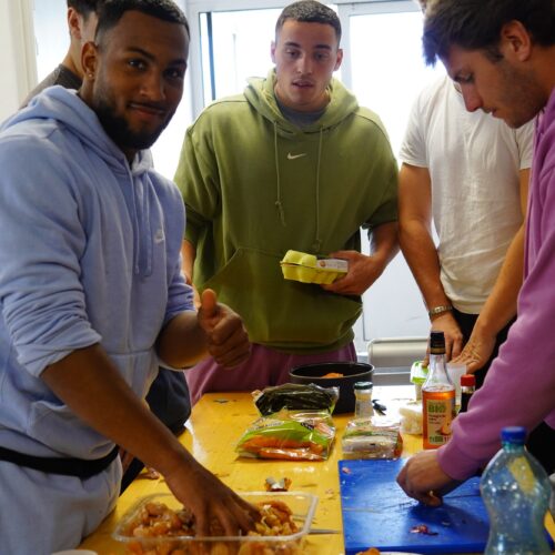 Les Espoirs Jaune et Bleu ont participé à un atelier similaire le mercredi soir. Tous les joueurs ont été mobilisés pour cuisiner ensemble des plats définis en amont par la diététicienne du club, Annabelle Alessio. Nos Espoirs étaient en charge de l’achat et du choix des ingrédients, jugés ensuite, par Annabelle, sur leurs qualités nutritives notamment. Là encore, la prise de conscience s’opérait autour des aliments utilisés.