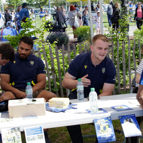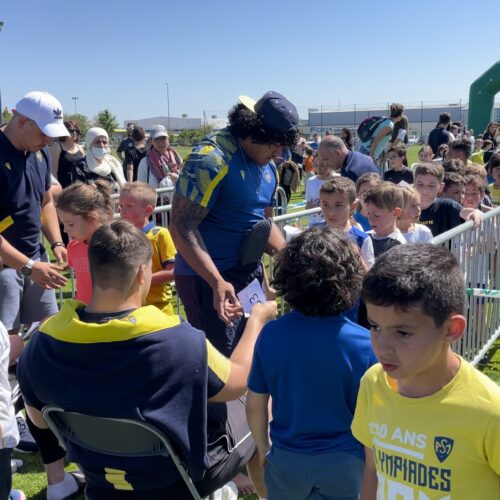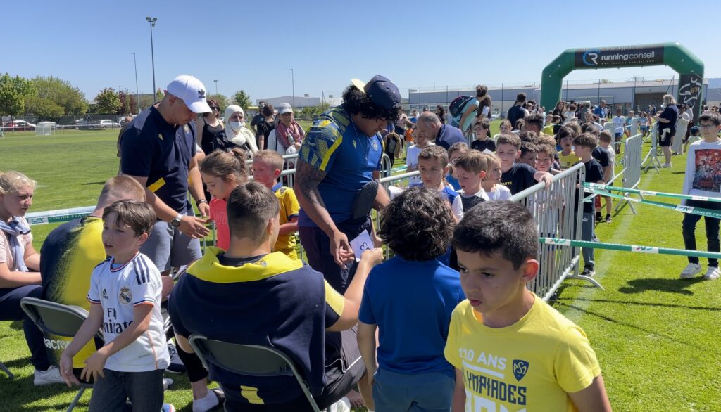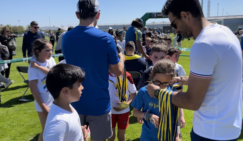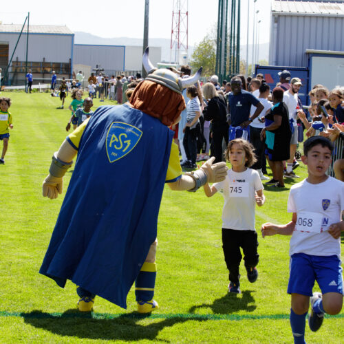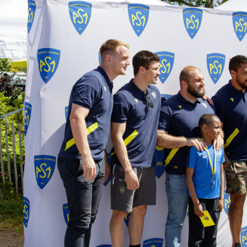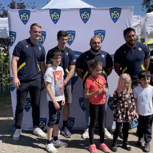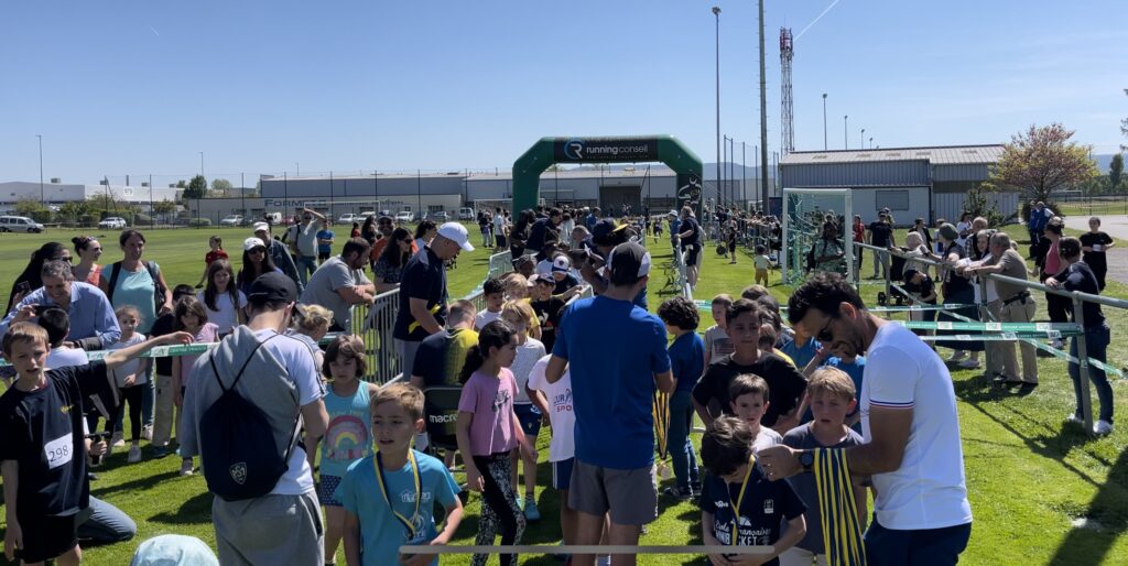 La mascotte Gergovix ainsi que 4 joueurs de l’ASM Clermont Auvergne, George Moala, Bautista Delguy, Giorgi Beria et Thibaud Lanen étaient présents et ont ravi nos jeunes coureurs à pied.