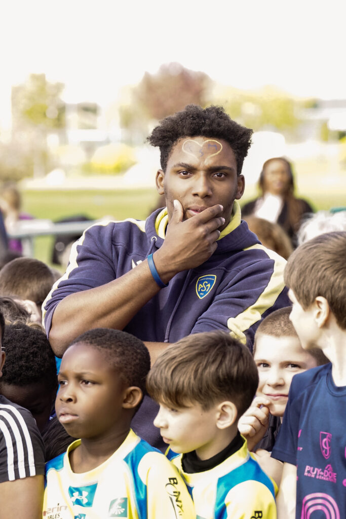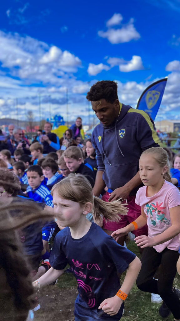 Sur le stand de l’ASM Clermont Auvergne : merchandising, billetterie, dédicace et photocall avec les joueurs, Cristian Ojovan, Daniel Bibi Biziwu, Léon Darricarrère et Pitas Gus Sowaka ont ravis nos jeunes coureurs et leurs parents.