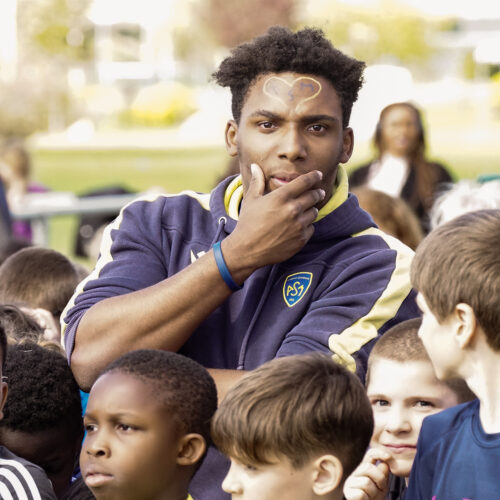 Notre partenaire Volvic, qui assurait la dotation en eau pour l’événement, tenait un stand promouvant la petite mêlée et permettant aux petits et grands de goûter les nouvelles eaux aromatisées.