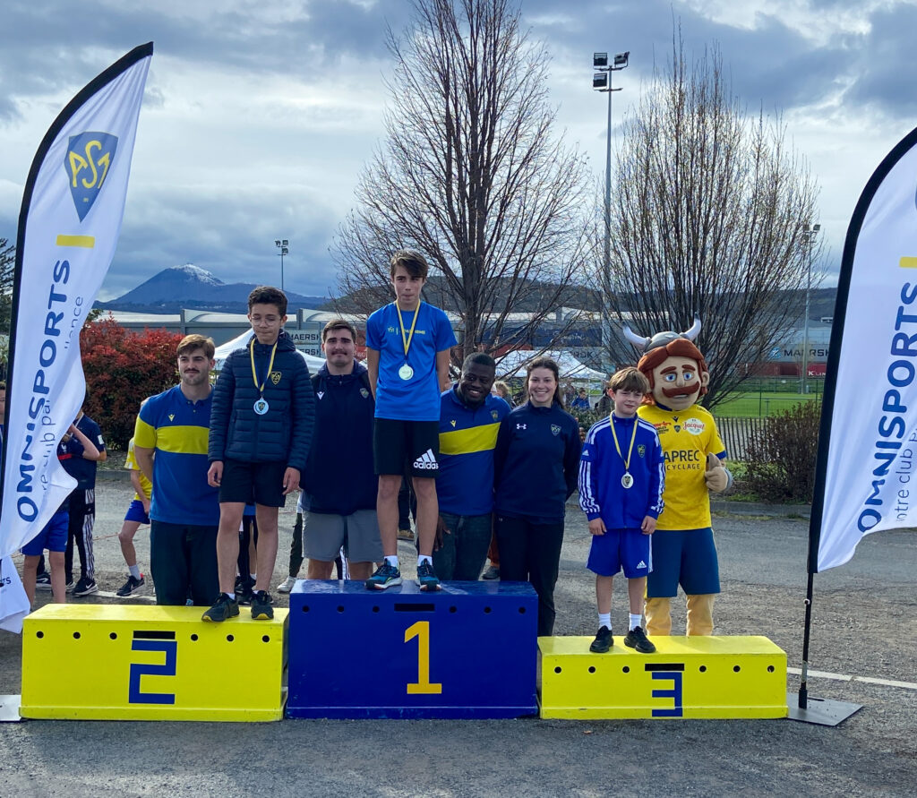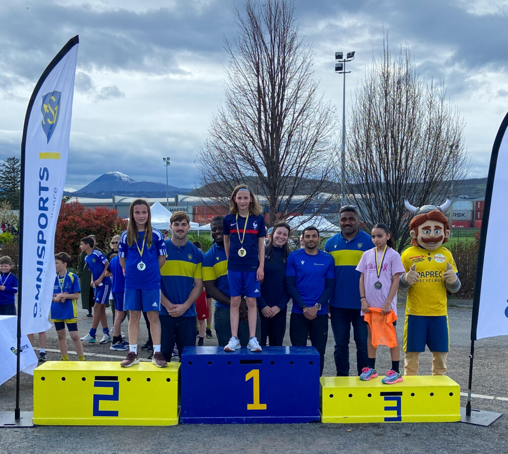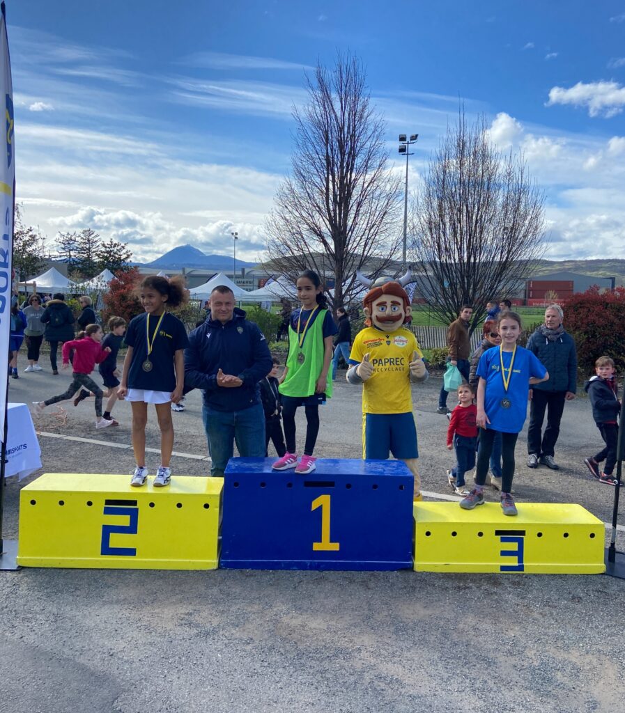Tous les participants ont reçu une médaille pour leur participation. Les 3 premières filles et les 3 premiers garçons des 4 courses disputées ont eu la chance de monter sur le podium et de recevoir une médaille honorifique. Ces médailles leur ont été remises par notre président Jean-Paul Chiocchetti, notre directeur Xavier Labaune, nos athlètes élites, Marc Perrin, Mélissa Huet et Thomas Kloeckner ainsi que par nos rugbymen professionnels et la mascotte Gergovix !