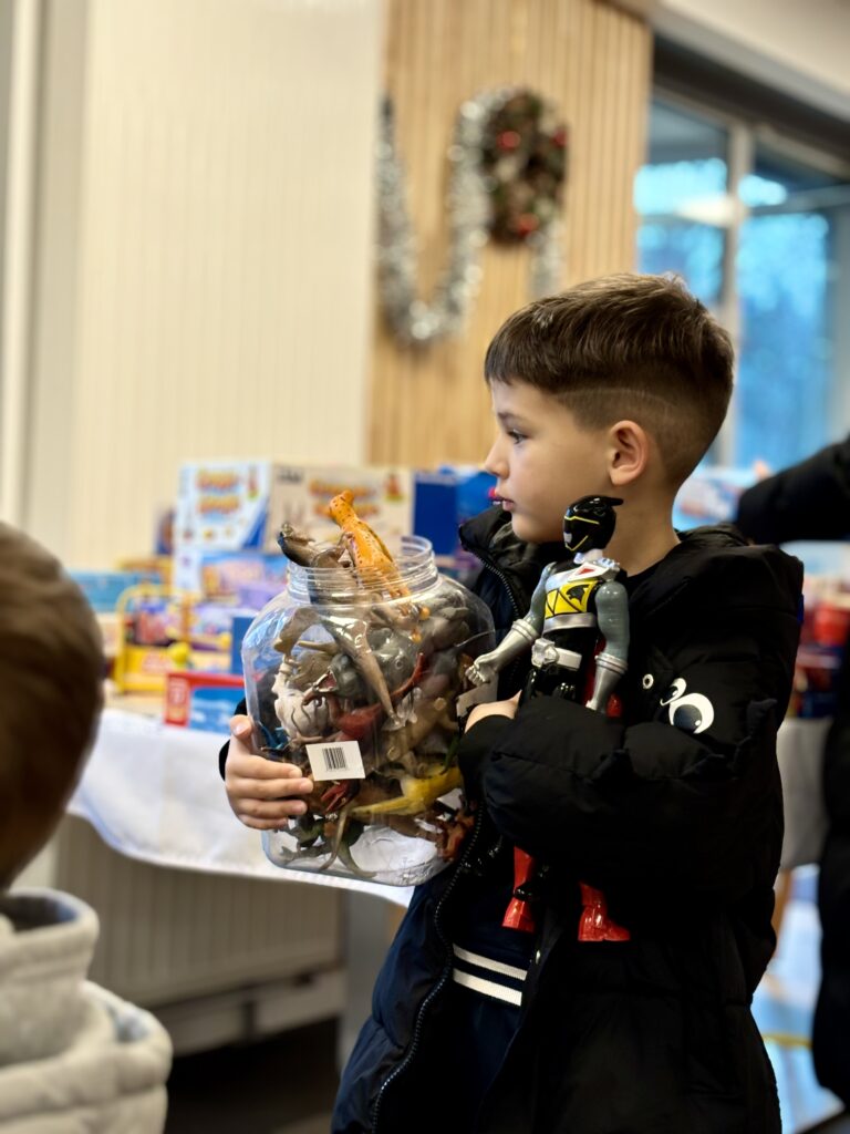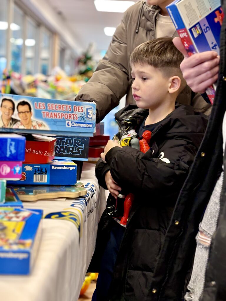 Moment magique de la journée : l’arrivée tant attendue du Père Noël ! Dans une ambiance festive et chaleureuse, il est venu remettre les cadeaux aux enfants, les yeux brillants d’impatience. Puzzles, peluches toutes douces, jeux de société et figurines ont illuminé les visages, avant que tout ce petit monde ne se retrouve autour d’un goûter gourmand pour prolonger la fête.