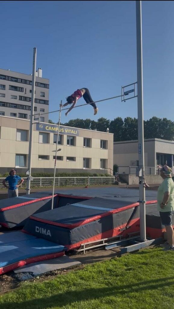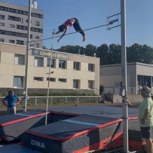 A la perche, Thomasz Wallet (catégorie juniors) monte à 3m95, en catégorie cadets Sainton Amazigh à 3m85 et Louise Inocienco à 2m60.