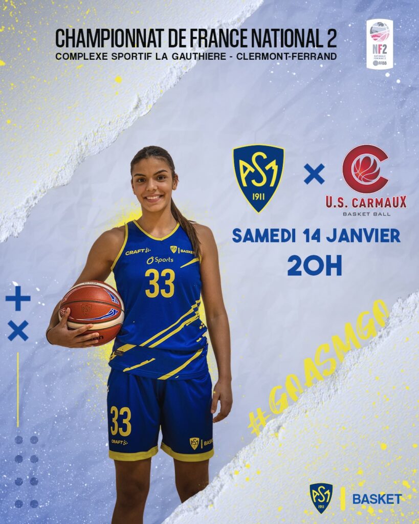 ASM BASKET : NF2 ASM VS CARMAUX SAMEDI 14 JANVIER 2023 20H COMPLEXE GAUTHIERE 1