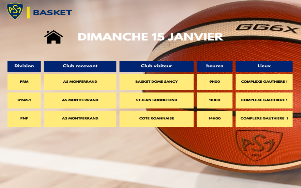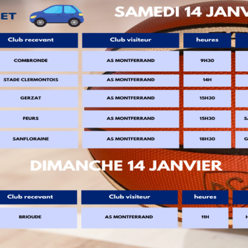 ASM BASKET : PLANNING WEEK END DU 14-15 JANVIER