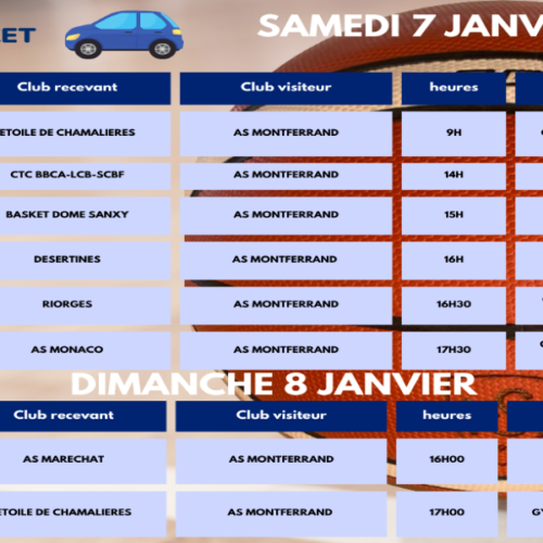 ASM BASKET : PROGRAMMATION WEEK END DU 7-8 JANVIER 2023