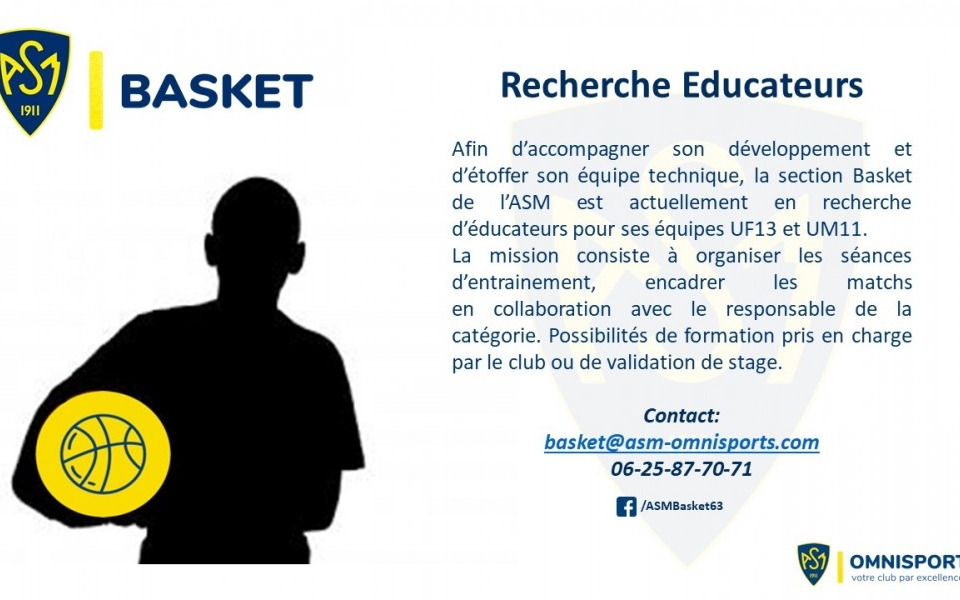 Afin d’accompagner son développement et d’étoffer son équipe technique, la section Basket de l’ASM est actuellement en recherche d’éducateurs pour ses [...]
