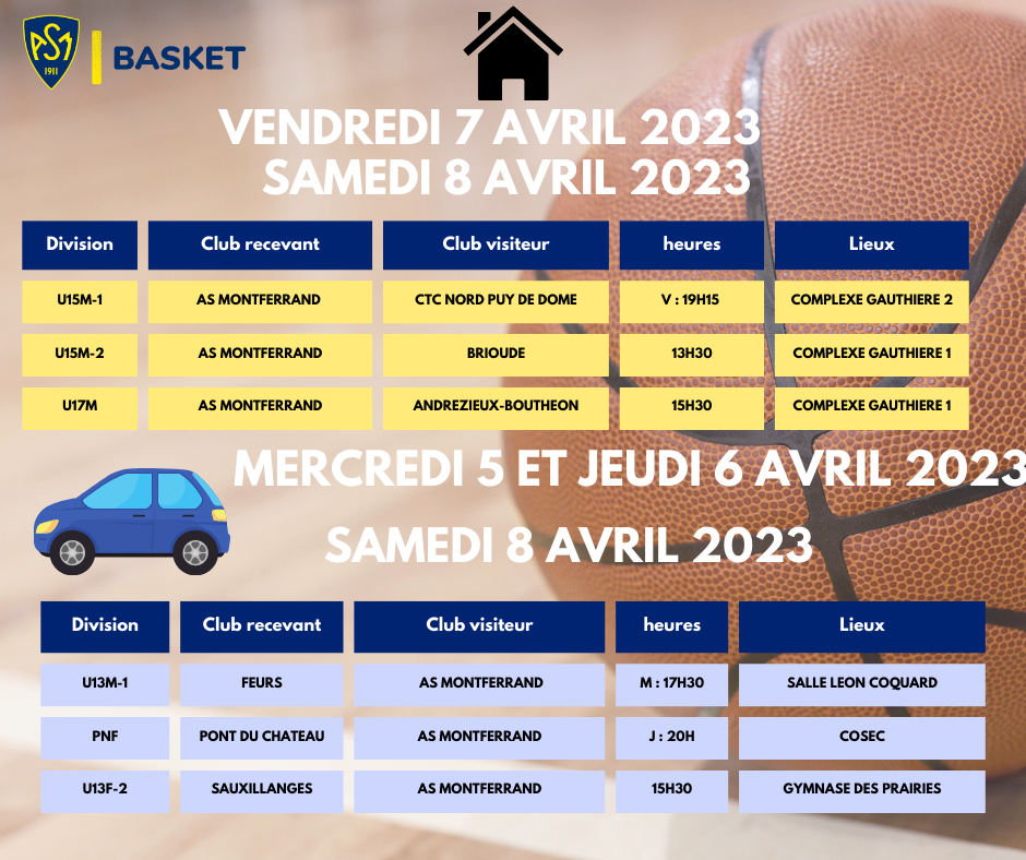 PLANNING MATCHS DU 5 AU 8 AVRIL 2023