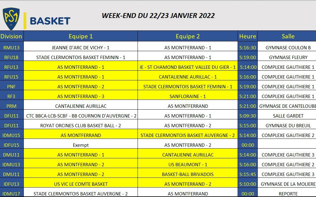 Programmation week end 22-23 janvier 2022