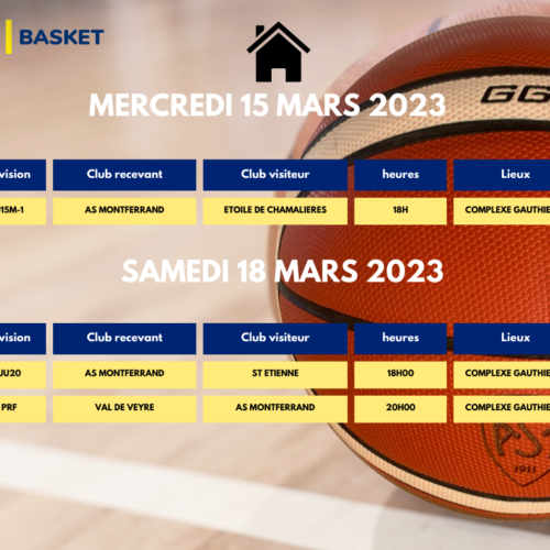 Mercredi 15 mars 2023 à 18h en salle 1, nos U15M1 accueilleront l’équipe de l’étoile de Chamalières.