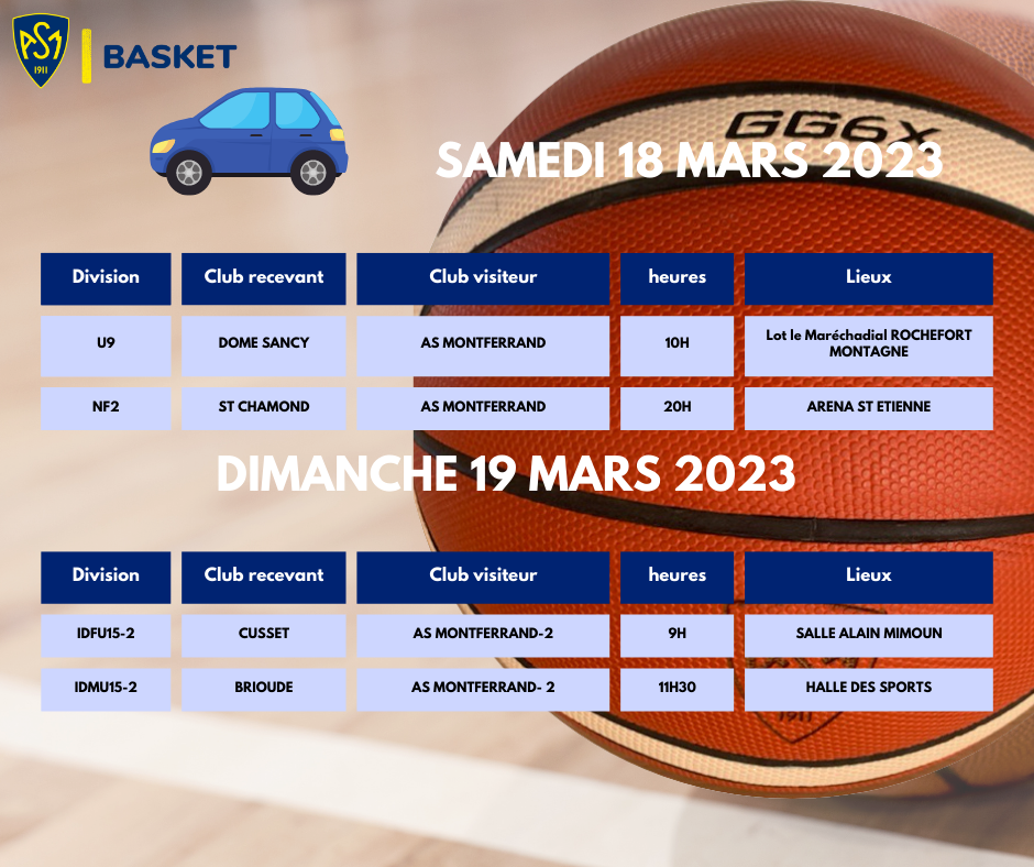 Nos U9 se rendront à Dôme Sancy pour un plateau samedi matin, nos U20 masculin et notre PRF recevront respectivement les équipes de St Etienne et BC Val de Veyre samedi à 18h et 20h en salle 1 de la Gauthière.