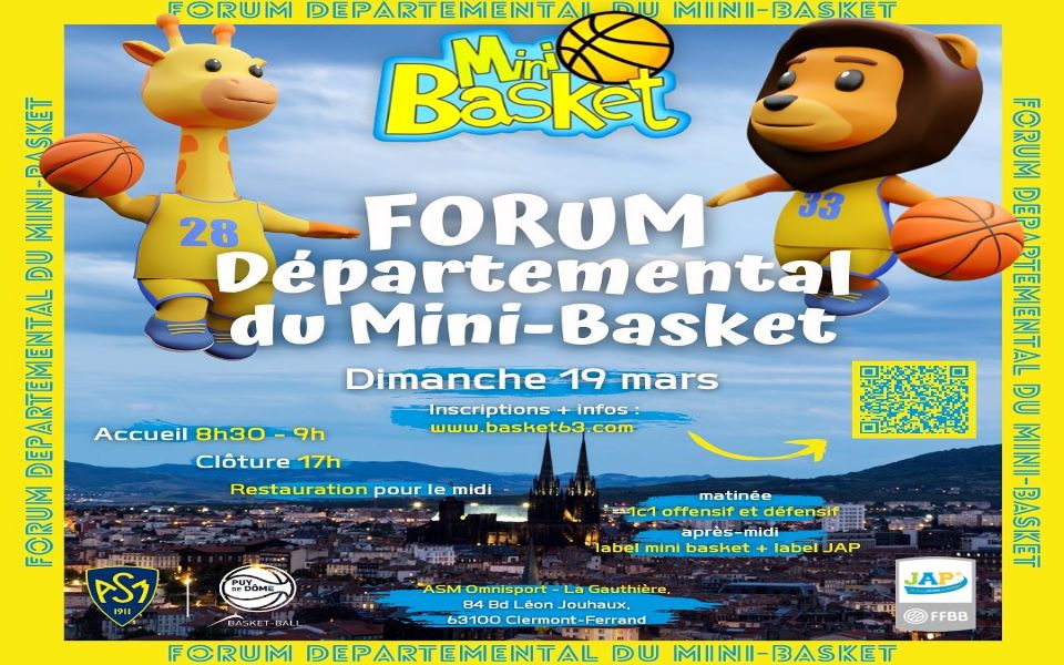 La section ASM Basket accueillera le Forum Mini Basket dimanche 19 mars de 9h à 17 h.