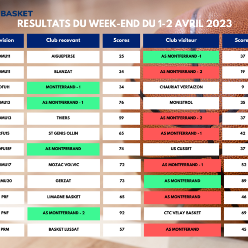 RESULTATS WEEK-END DU 1-2 AVRIL 2023