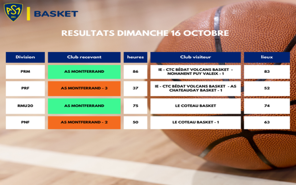 16 victoires pour 4 défaites ce week end. Un double clin d’oeil à l’équipe NF2 qui ouvre son compteur de victoire et au UM20 de Damien Barralon qui avec un déficit de 14 points à 5 minutes de la fin remporte sa rencontre.