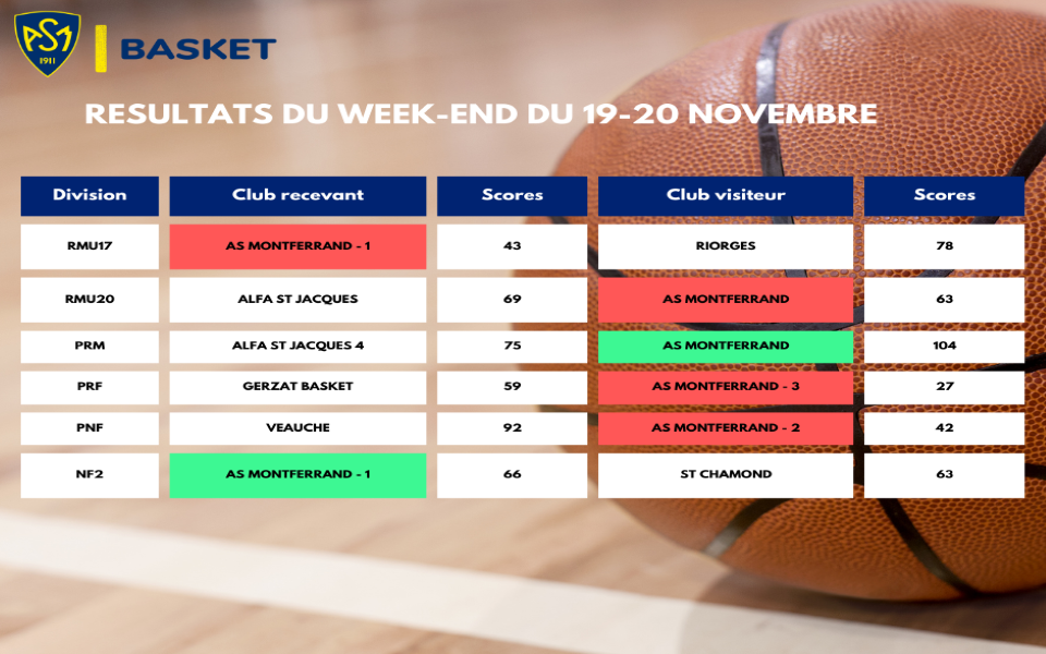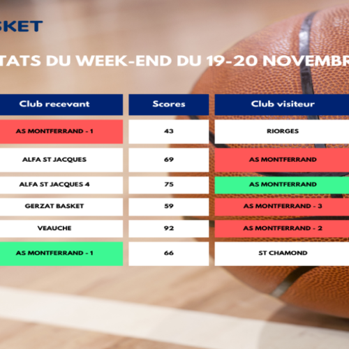 WEEK END COMPLIQUE POUR NOS BASKETTEURS : 6 victoires pour 11 défaites