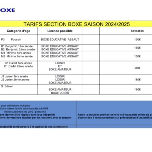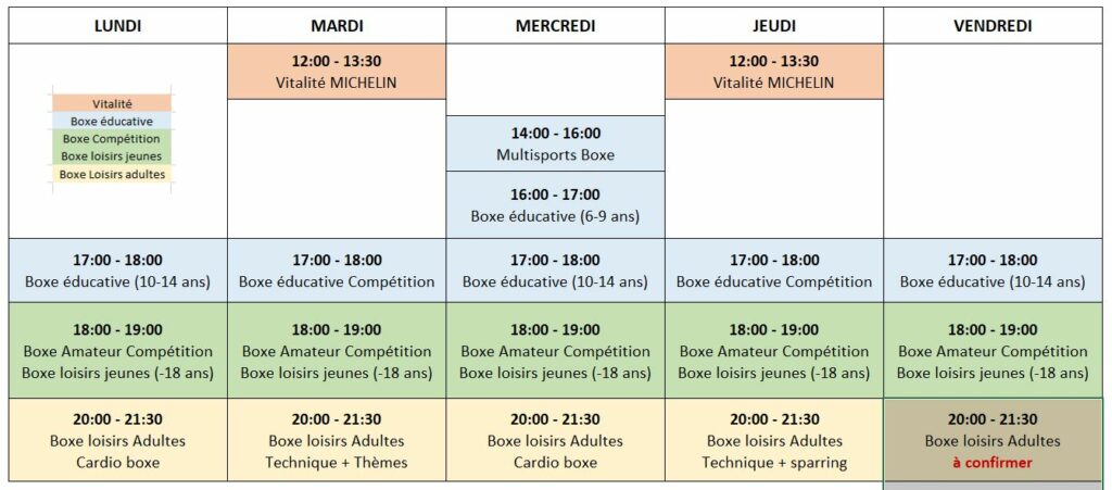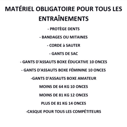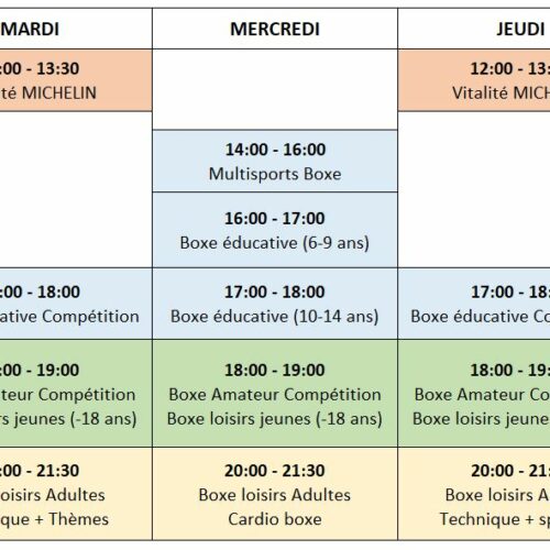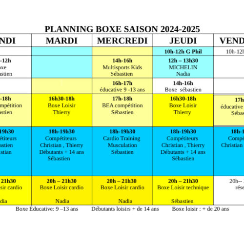 HORAIRES Reprise des cours section boxe amateur , lundi 01 septembre 2025 à 18h.