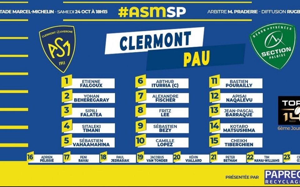 9 joueurs issus de la Formation Clermontoise alignés face à Pau