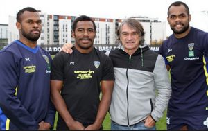 Franck Boivert, grand artisan du développement du rugby au pacifique lors des 30 dernières années avec Alivereti Raka, Seta Tui Cuvu et Pecelli Yato (à droite).