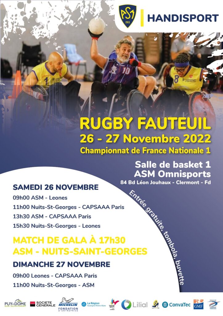 ASM Handisport – Championnat France Rugby Fauteuil N1 les 26 et 27 novembre à l’ASM