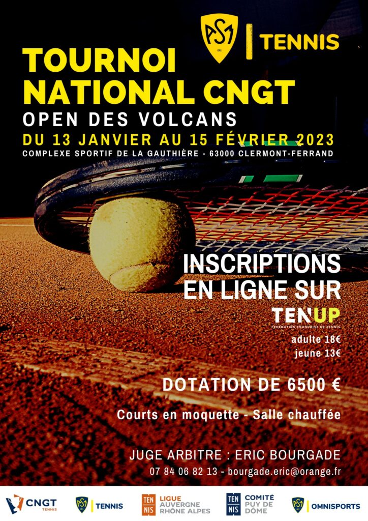 L’édition 2023 de l’Open des Volcans a débuté ce vendredi 13 janvier et se déroulera jusqu’au mercredi 15 février prochain. Les matchs ont lieu sur les moquettes de l’ASM au complexe sportif de la Gauthière, à partir de 18h en semaine et en journée complète les week-ends. Organisé par la section Tennis de l’ASM, ce tournoi de niveau National, catégorie CNGT (Circuit National des Grands Tournois), est un évènement incontournable des compétiteurs. Il est ouvert à tous, femmes et hommes de tout âge, toute catégorie et tout classement. Eric BOURGADE, bénévole au Club, officie à nouveau en tant que juge-arbitre du tournoi. Le CNGT regroupe les tournois français les plus importants et constitue la première marche du circuit international.