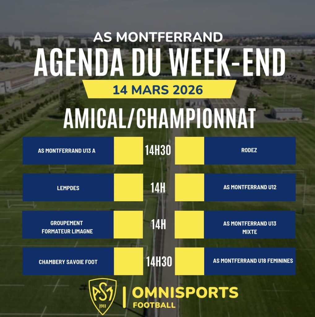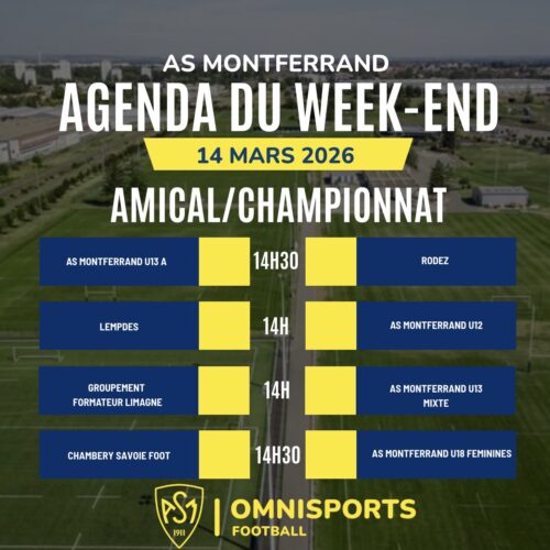 Le week-end des 13, 14 et 15 mars s’annonce particulièrement animé pour l’AS Montferrand Football.
