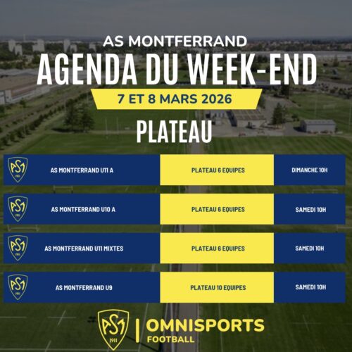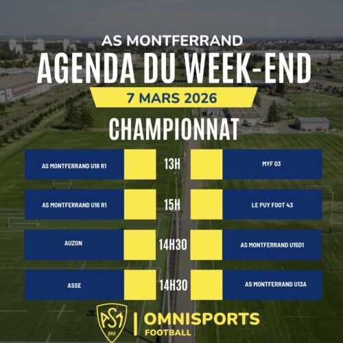 Le week-end des 7 et 8 mars sera entièrement consacré au championnat pour les équipes de l’AS Montferrand Football.