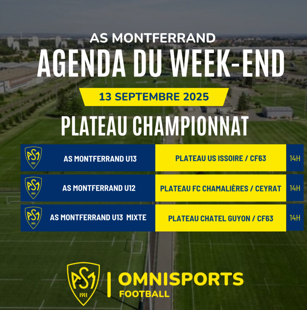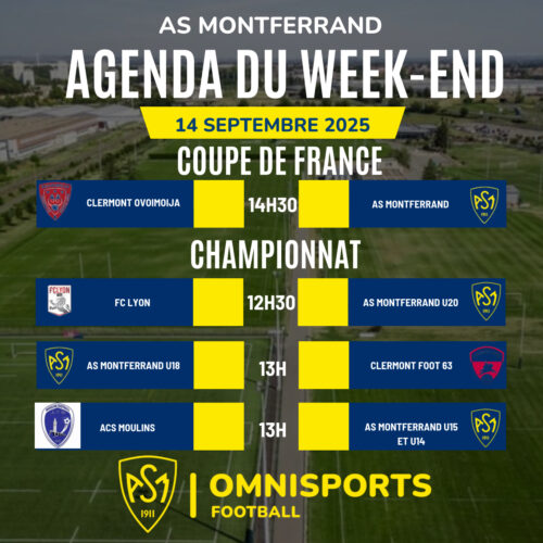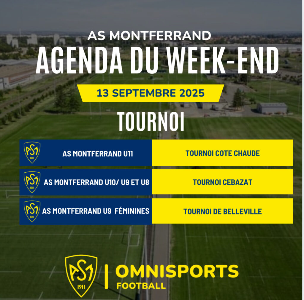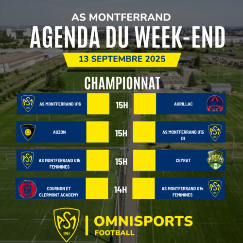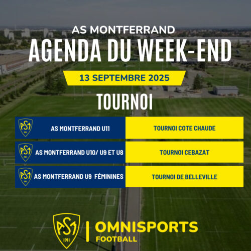Ce week-end, l’AS Montferrand Football sera présente sur de nombreux terrains, avec un programme mêlant tournois de jeunes et matchs officiels pour nos différentes catégories.