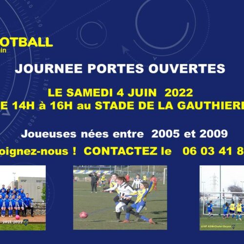 L’ASM invite toutes les potentielles futures joueuses féminines nées entre 2005 et 2009 à la journée « portes ouvertes » du SAMEDI 4 JUIN 2022 de 14 H à 16 H au Stade de la Gauthière.