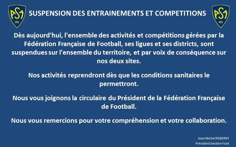 Les annonces du Président de la République conduisent la Fédération Française de Football à prendre ses responsabilités pour contribuer sans ambiguïté à endiguer la crise sanitaire qui frappe notre pays. En conséquence, je souhaite annoncer dès ce soir la suspension de l’ensemble des activités et compétitions gérées par la Fédération, ses Ligues et ses Districts, sur l’ensemble du territoire.