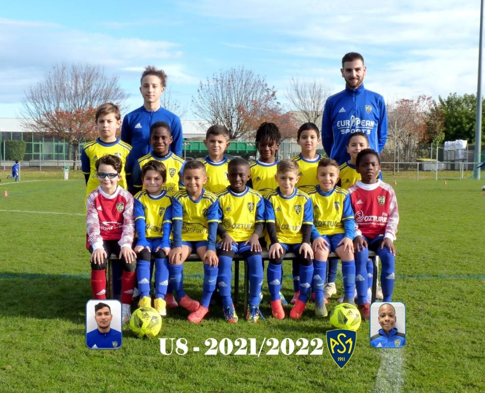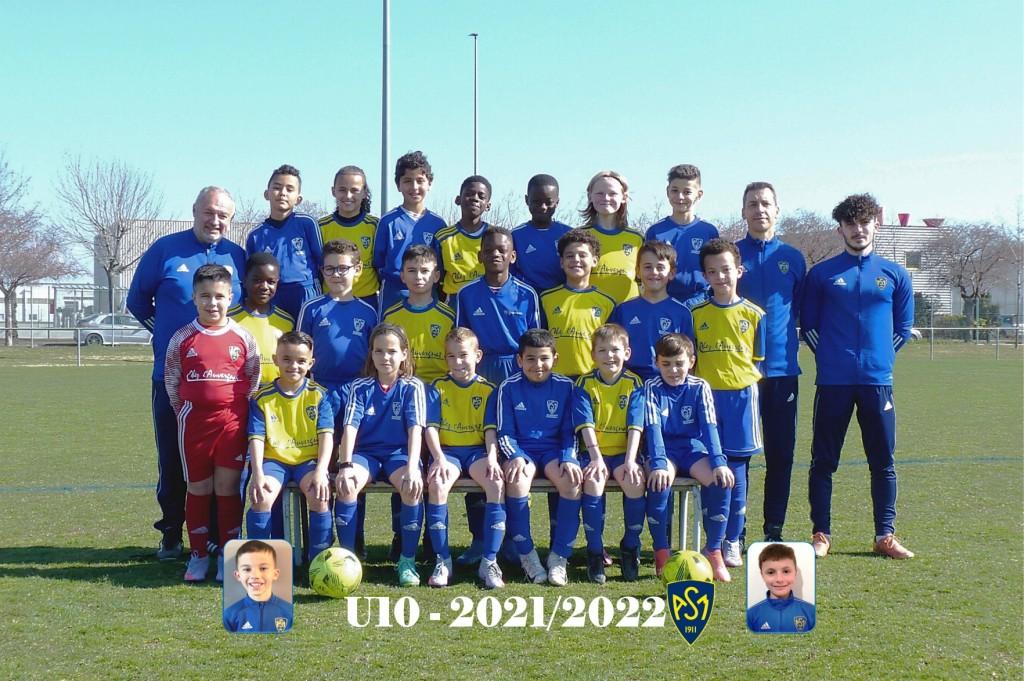 24 joueurs (2009) répartis en 2 groupes, pour le groupe A nous avions décidé de sortir du championnat traditionnel et de ne faire que des matches amicaux contre de très bons clubs régionaux afin de préparer l’avenir. Nous sommes très satisfaits du comportement de ce groupe qui a confirmé que nous avions une belle génération 2009. Cette équipe s’est distinguée aussi en coupe nationale 13 ans en remportant la finale départementale et en terminant 2ème derrière l’ OL lors de la finale régionale. Vainqueur aussi de quelques tournois régionaux ce groupe a vu 2 de ses joueurs récompensés : Marwann part pour l’OL et Gedeao rentre au pôle espoirs à Lyon.
