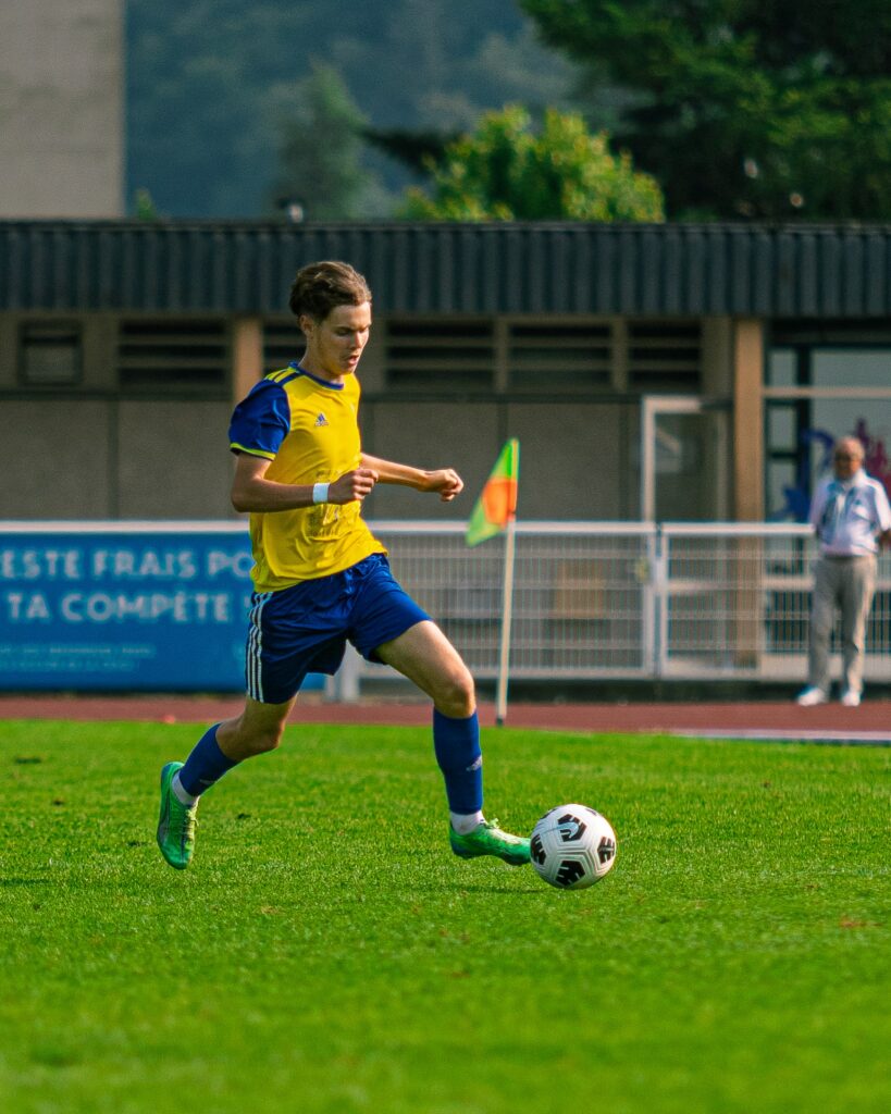 Les joueurs de Jordan LOTIÈS se présentaient avec un 4-4-2 et un bloc médian voire bas, laissant la possession aux sangs et or. Nos Asémistes défendaient parfaitement, bloquant les relances adverses et s’en sortaient malgré quelques situations adverses dont un poteau, avec un score vierge à la pause. Et cette 1ère période laissait quelques regrets, avec 2 faces-à-faces ratés par notre numéro 9, Richard. La 2e mi-temps, nos Asémistes peinaient un peu plus physiquement, mais faisaient preuve d’un énorme courage, bloquant toutes les situations ou tirs adverses pour tenir le score. Et malheureusement, dans le temps additionnel (4 minutes annoncées par l’arbitre), nos Jaunes & Bleus concédaient un but sur un ultime corner, renvoyé par la défense puis remis dans la boite, et le ballon entrait dans le but au terme d’un cafouillage.