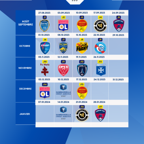 𝗢𝗹𝘆𝗺𝗽𝗶𝗾𝘂𝗲 𝗟𝘆𝗼𝗻𝗻𝗮𝗶𝘀, 𝗔𝗝 𝗔𝘂𝘅𝗲𝗿𝗿𝗲, 𝗙𝗖 𝗠𝗲𝘁𝘇, 𝗖𝗹𝗲𝗿𝗺𝗼𝗻𝘁 𝗳𝗼𝗼𝘁, 𝗔𝗦 𝗡𝗮𝗻𝗰𝘆 𝗟𝗼𝗿𝗿𝗮𝗶𝗻𝗲, 𝗗𝗶𝗷𝗼𝗻 𝗙𝗖𝗢, 𝗘𝗦𝗧𝗔𝗖 𝗧𝗿𝗼𝘆𝗲𝘀, 𝗥𝗮𝗰𝗶𝗻𝗴 𝗰𝗹𝘂𝗯 𝗱𝗲 𝗦𝘁𝗿𝗮𝘀𝗯𝗼𝘂𝗿𝗴, 𝗣𝗮𝗿𝗶𝘀 𝗙𝗖 𝗼𝘂 𝗲𝗻𝗰𝗼𝗿𝗲 𝗙𝗖 𝗦𝗼𝗰𝗵𝗮𝘂𝘅 𝗠𝗼𝗻𝘁𝗯𝗲́𝗹𝗶𝗮𝗿𝗱… seront nos adversaires (voir ci-joint le calendrier).