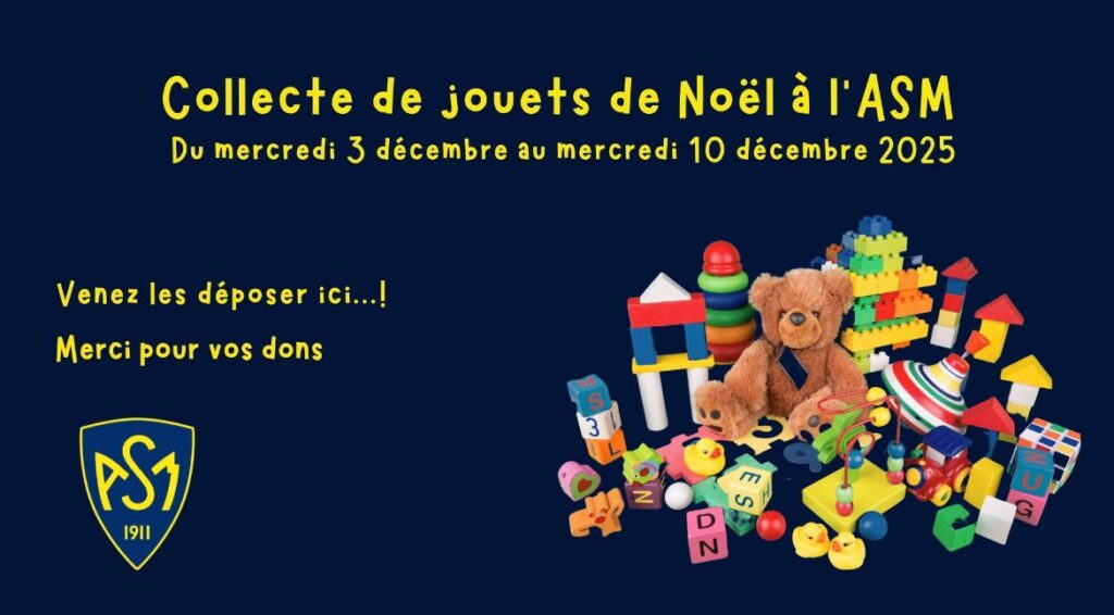 L’ASM Omnisports organise sa traditionnelle collecte de jouets à l’occasion des fêtes de fin d’année. Cette action solidaire vise à offrir un Noël plus chaleureux aux enfants qui en ont besoin.