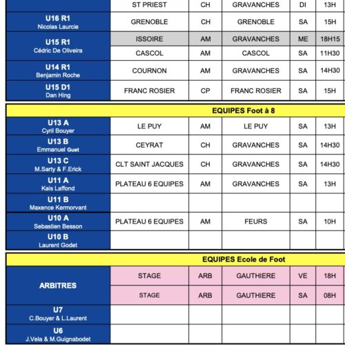 Dimanche, il faudra venir supporter les U13F de Dan HING à 10h30 aux Gravanches, suivis de nos U18R1 qui recevront l’AS Saint Priest dans un remake du barrage qui avait permis à nos U18 de monter en U19 Nationaux en juin dernier. Et pour finir, à 14H30, les U19 de Morgan LAGRANGE recevront notre club partenaire du club Clermont Foot dans un choc au sommet pour ce premier match de championnat de 2024.