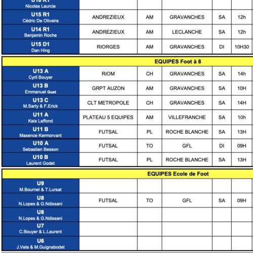 Découvrez les différentes rencontres de nos asémistes ce week-end sous réserve du temps. À noter la reprise du championnat pour nos U13A et U13C ce samedi à 14h.