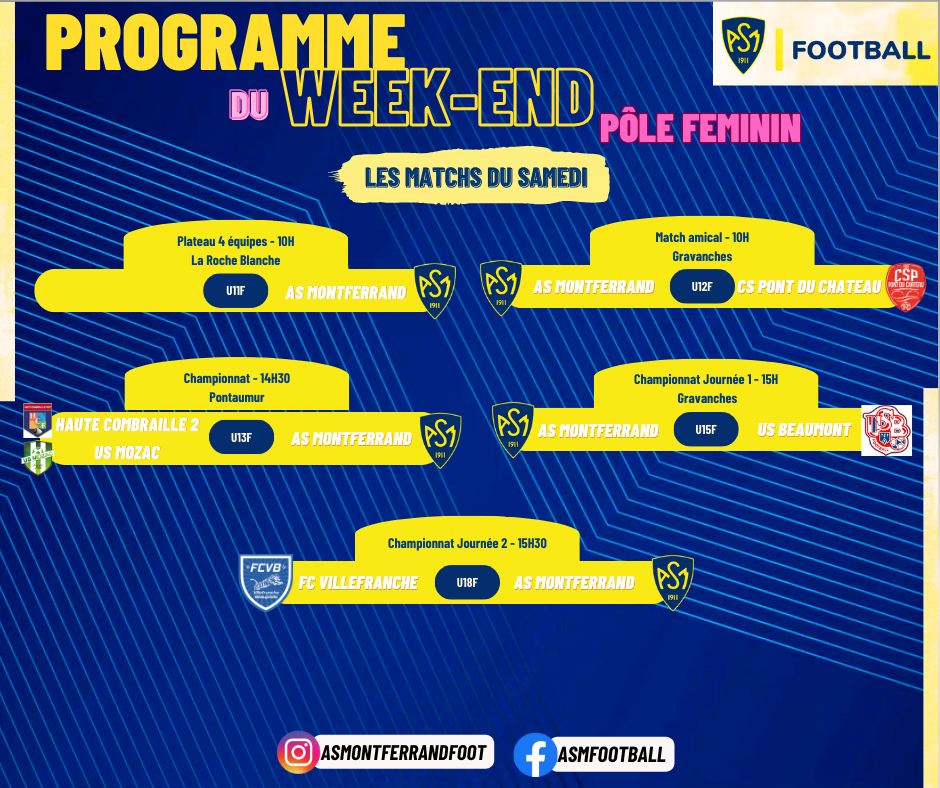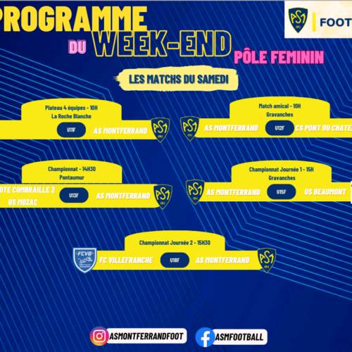 À noter nos 3 équipes U13 qui commencent leur championnat respectif ainsi qu’un dimanche chargé avec la réception du FC 93 pour nos U19 Nationaux et du Grenoble foot 38 pour les u16 de Nicolas Laurcie qui tenteront de décrocher leur 1ère victoire.