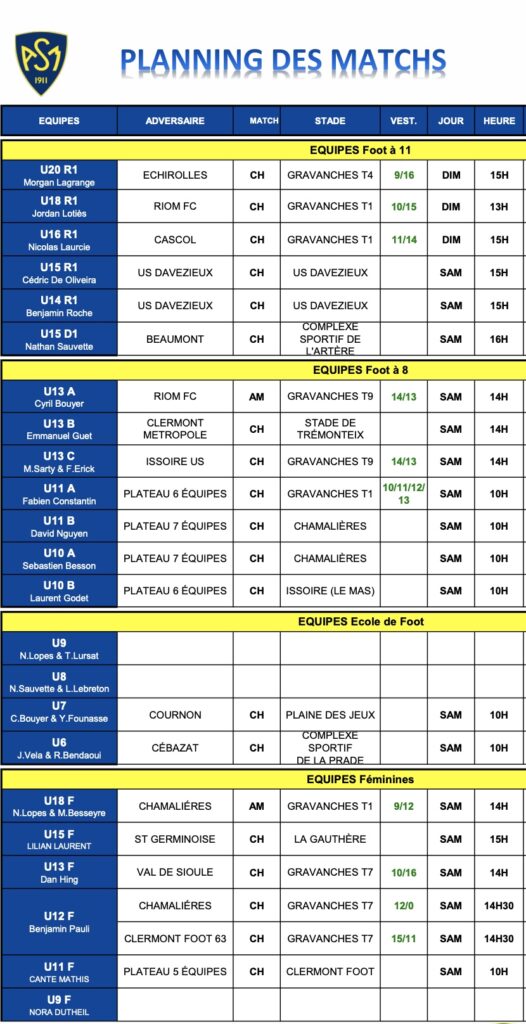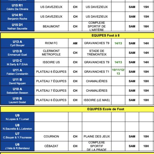 Le planning de ce week-end est en ligne !