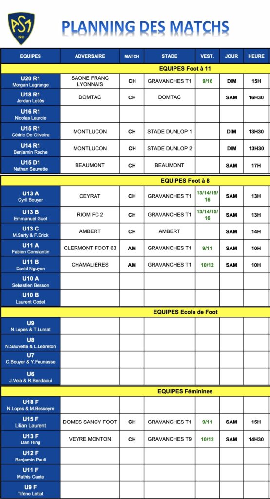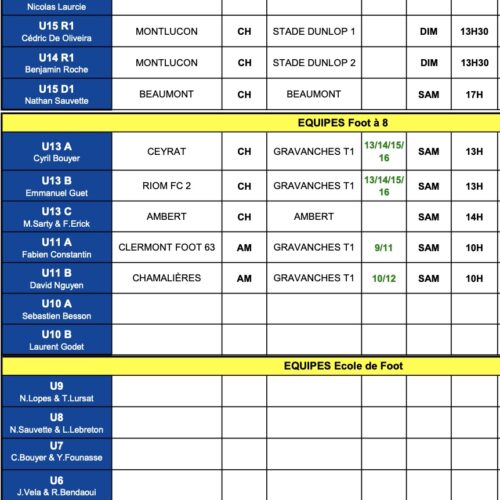 Découvrez le planning de ce week-end avec la reprise du championnat pour nos U14 et U15 et un déplacement à Montluçon ! Pas de matchs pour nos U16 ce week-end mais un déplacement à Domtac pour les U18 de Jordan Lotiès et la réception de Saône Francs Lyonnais pour les U20 de Morgan Lagrange !