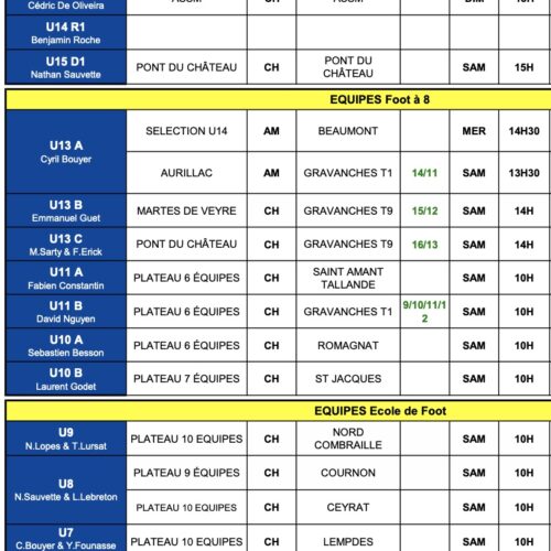 Découvrez sans plus attendre le planning du week-end avec notamment les deux gros déplacements pour nos U18F à MYF Bessay et pour nos U18G contre Le Puy Foot 43.