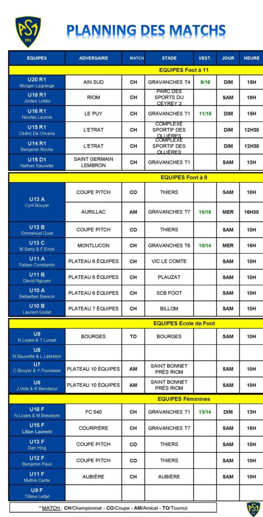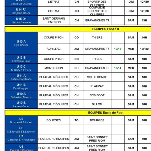 C’est un week-end plein qui arrive avec notamment la Coupe Pitch pour nos U13A, U13B et U12F. La grosse affiche du week-end marquera la réception de Le Puy Foot pour nos U16.