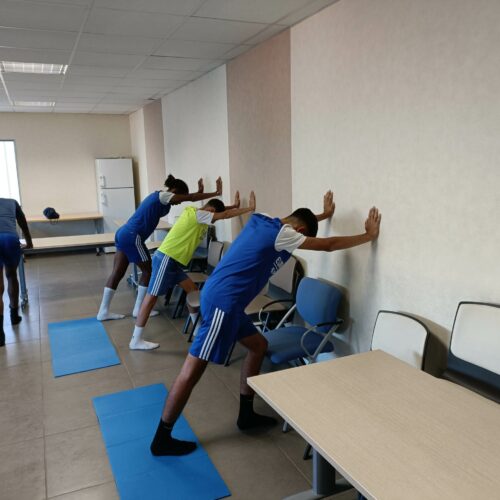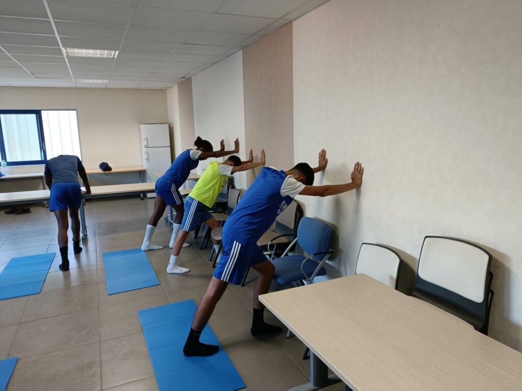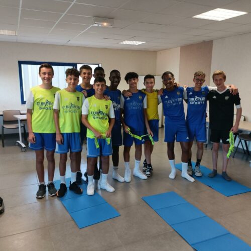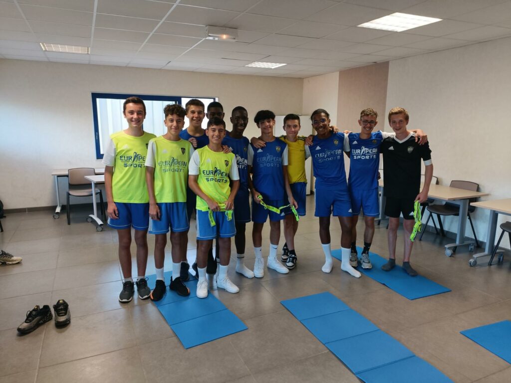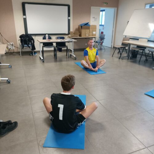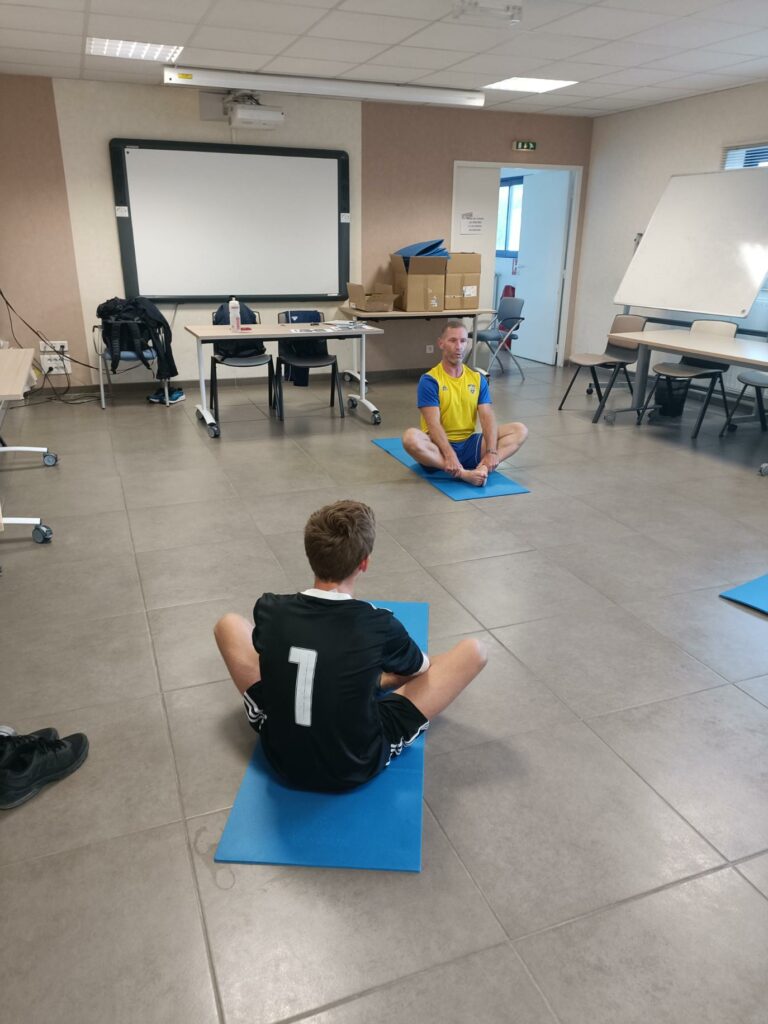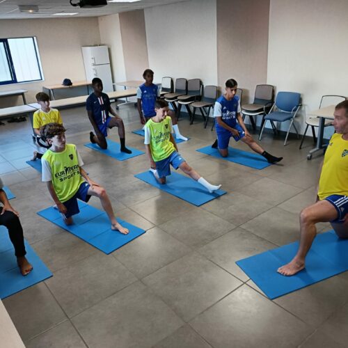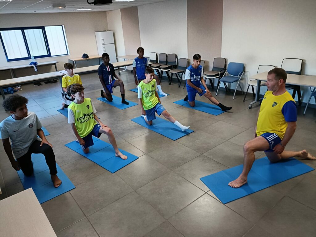 Chaque lundi durant la saison, plus de 120 joueurs jaunes et bleus de U12 à U15 auront l’opportunité de suivre 4 séances réalisées par Monsieur Polack (kiné) et Cyril Bouyer (éducateur U14) sur les étirements.