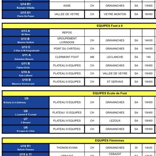 Pas moins de 12 matchs/plateaux à domicile ce week-end pour nos jaunes et bleus
