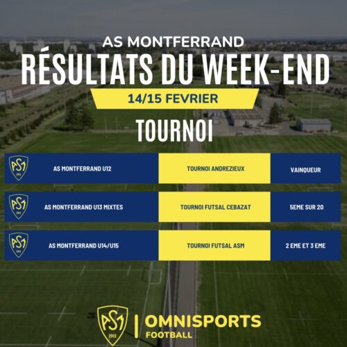 L’ASM Foot félicite l’ensemble des joueurs et joueuses pour leur engagement et remercie les éducateurs, dirigeants, bénévoles ainsi que les arbitres pour leur investissement tout au long du week-end.