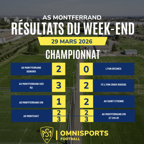 Le week-end des 28 et 29 mars a été marqué par de nombreuses rencontres pour l’AS Montferrand Football, entre championnat et compétitions.