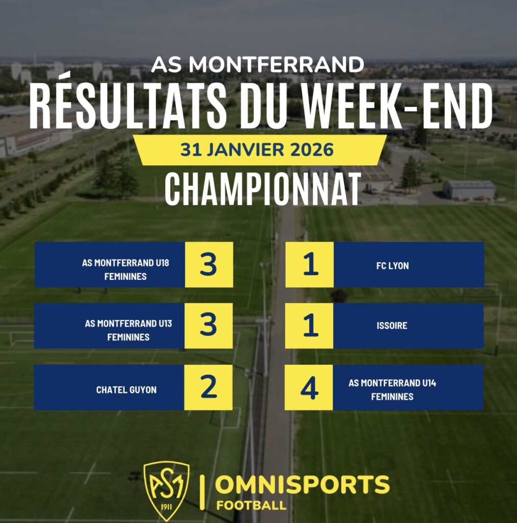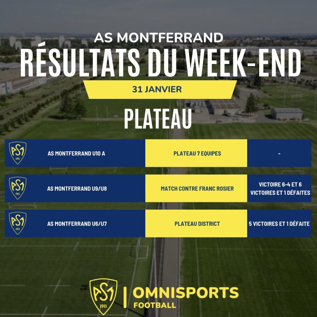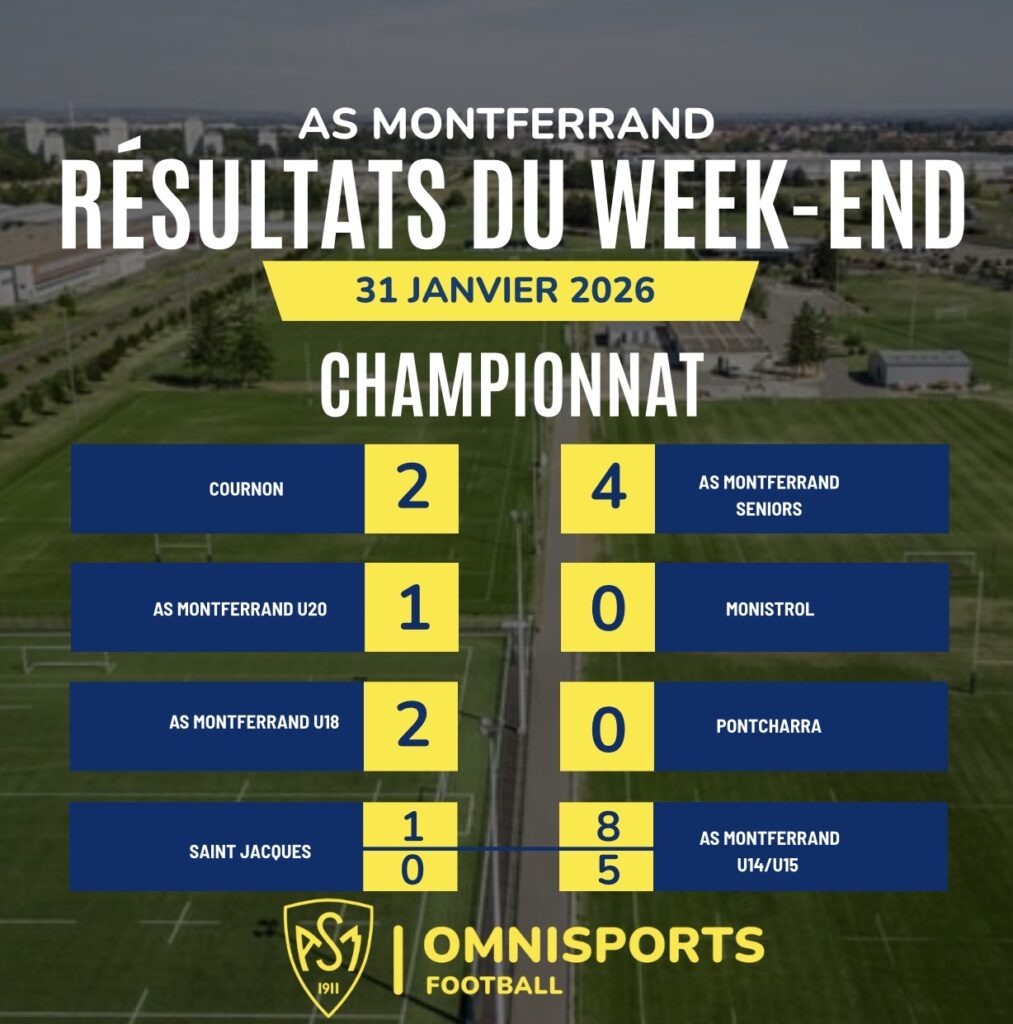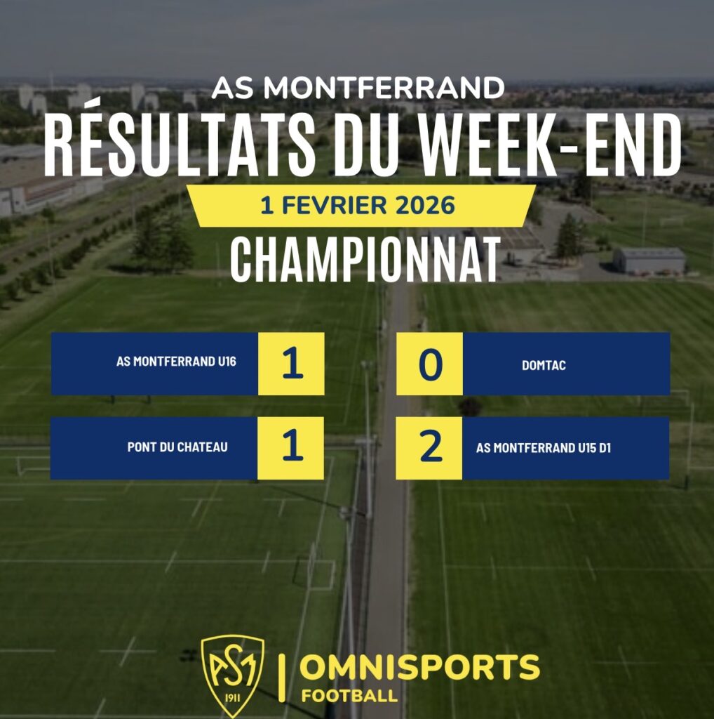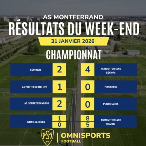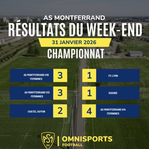 Le week-end des 31 janvier et 1er février a été particulièrement positif pour l’AS Montferrand Football, avec un bilan 100 % victoires pour l’ensemble des équipes engagées en match.