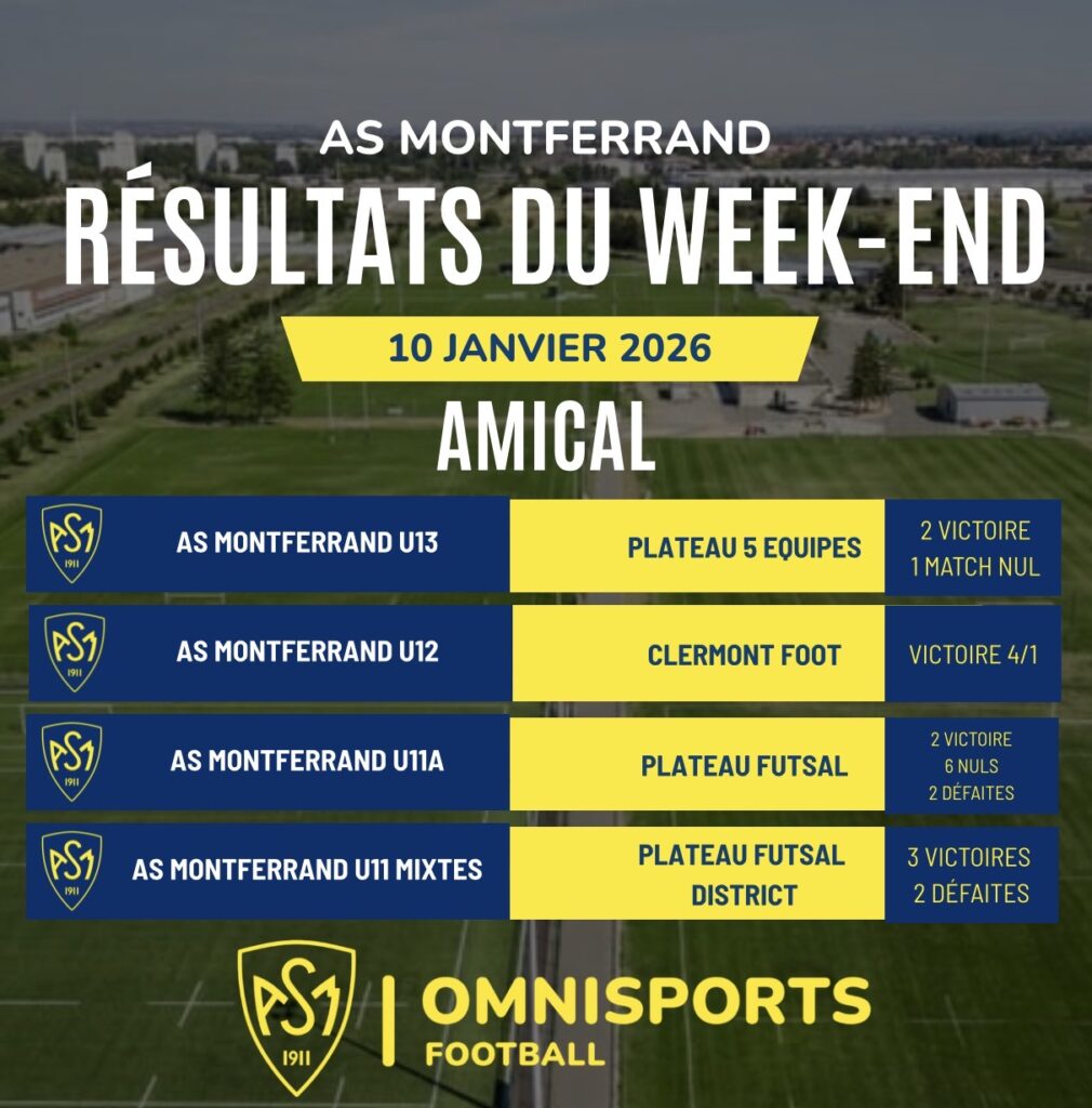 Retour sur les rencontres disputées ce week-end par les équipes de l’AS Montferrand Football.